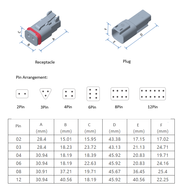 Figure 2:Specifications of Greenconn GT Series Waterproof Connectors