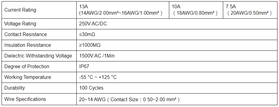 Figure 1:Greenconn GT Series Waterproof Connectors 1.Performance Specifications