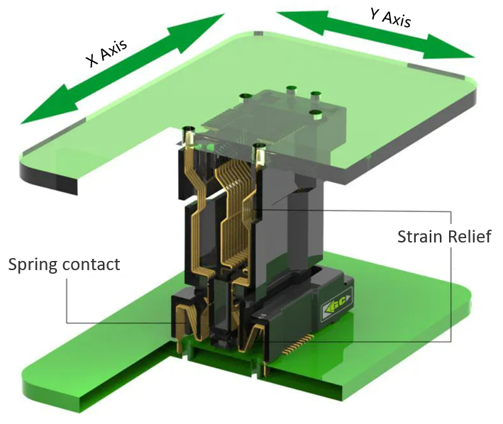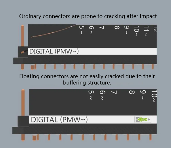 1.3 Any slight misalignment of a non-floating connector will result in some level of extrusion and strain. The prolonged build-up of pressure can have a negative impact on the stability of solder joints on the PCB board, resulting in potential failure. Floating connectors offer a solution to eradicate stress within dislocation structures, thereby ensuring the reliability of the entire line.