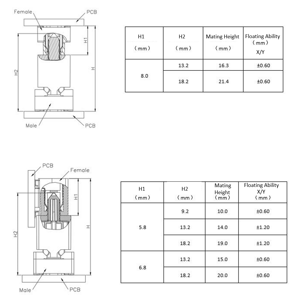 1.1 In practical scenarios, when two PCB boards are connected using multiple connectors or a single set of connectors, there may be misalignment due to slight deviations in accuracy during the assembly process. This misalignment poses a challenge in achieving a precise fit, making the assembly process quite difficult. However, by utilizing floating connectors, this issue can be easily resolved.