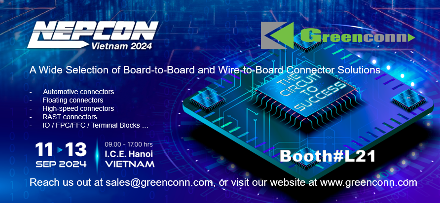 Greenconn, a leading connector manufacturer, will showcase our latest connector products and interconnect solutions at Nepcon Vietnam 2024, advancing smart electrical connectivity in different industries.