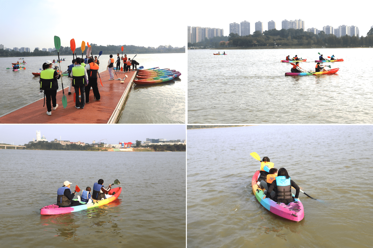 游戏结束,稍作休息,我们开启了划船活动。团队成员三两成队,各司其职,掌舵与划桨协同合作,齐心协力向终点进发,彰显了团队协作的力量。