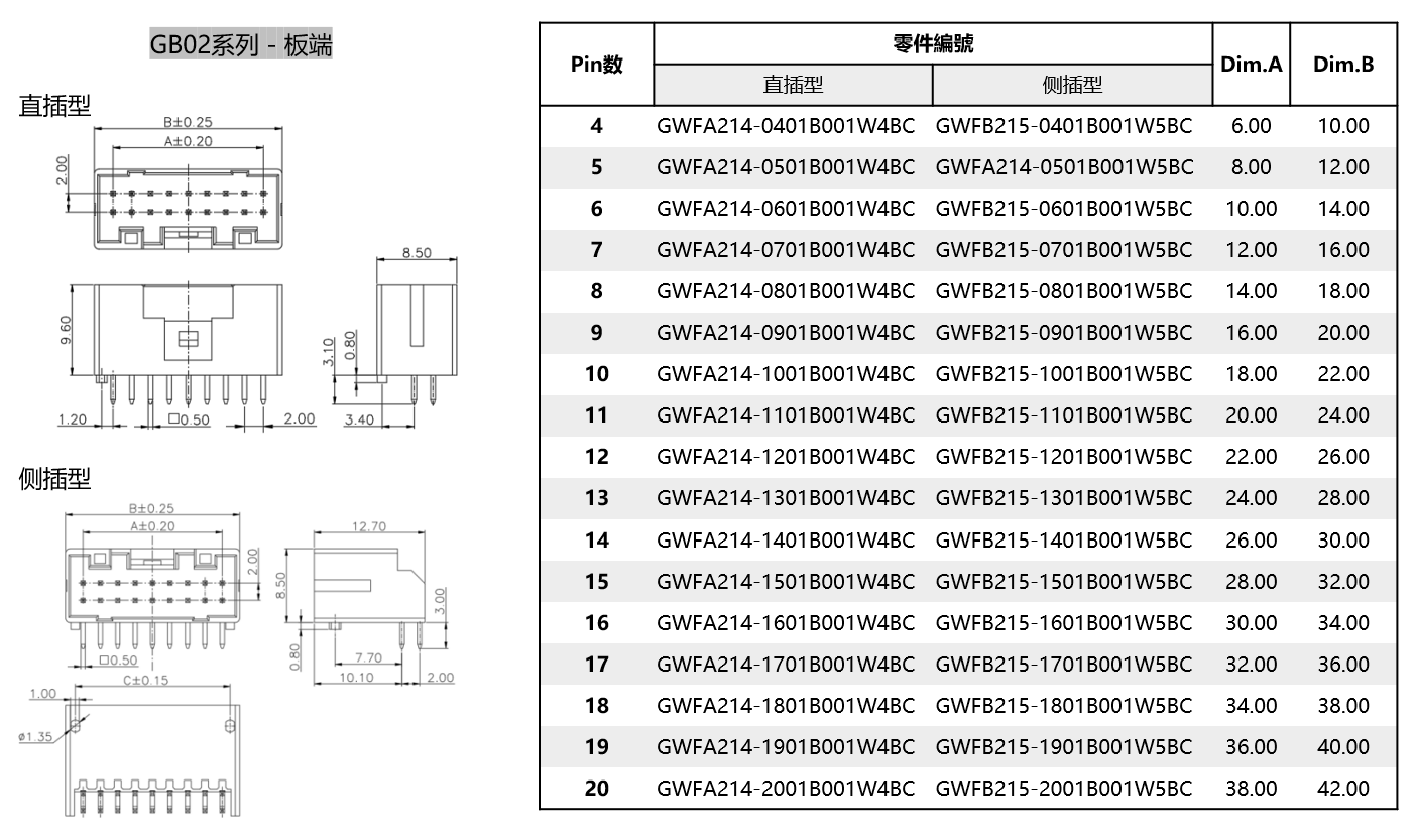 這兩款連接器都展現了GB系列在電子連接領域的技術優勢和應用廣泛性。以下,詳細展示對比了GB兩個系列的產品性能和產品規格,以便進一步的選型參考。